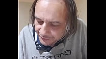Ordeñando mi polla tiesa con las bolas atadas y disparando la crema 3 min