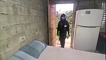 El repartidor de Mercado Libre recibió el paquete. El repartidor solo llevaba una toalla. Se puso muy cachondo cuando me quité la toalla y vio mi polla negra. 27 min